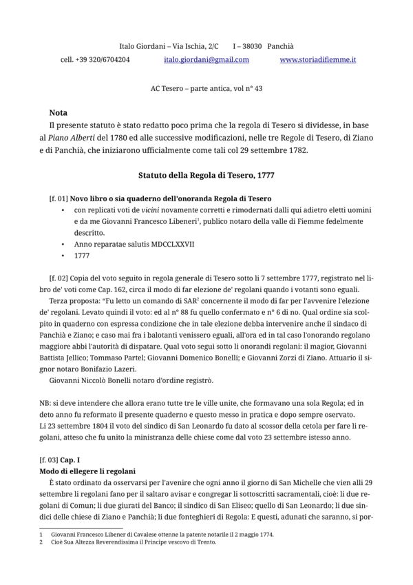 Condizione sociale popolazione Regola di Tesero nel 1664