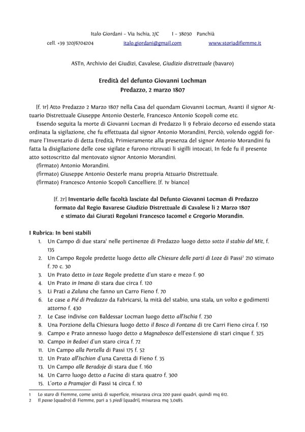 Testamento di don Antonio Longo nel 1820 (prima parte) Testamento Inventario Varena Comunità Cavalese Tesero Chiese Religione lug 1, 2019